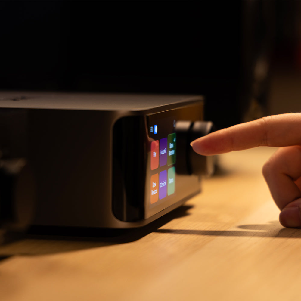 アルミニウム筐体に3.5インチのガラスカバー付きタッチスクリーンを搭載。オーディオパーツには高音質コンポーネントを厳選し、豊富な入出力端子を装備しながら、使いやすさとハイクオリティなサウンドを両立しました。